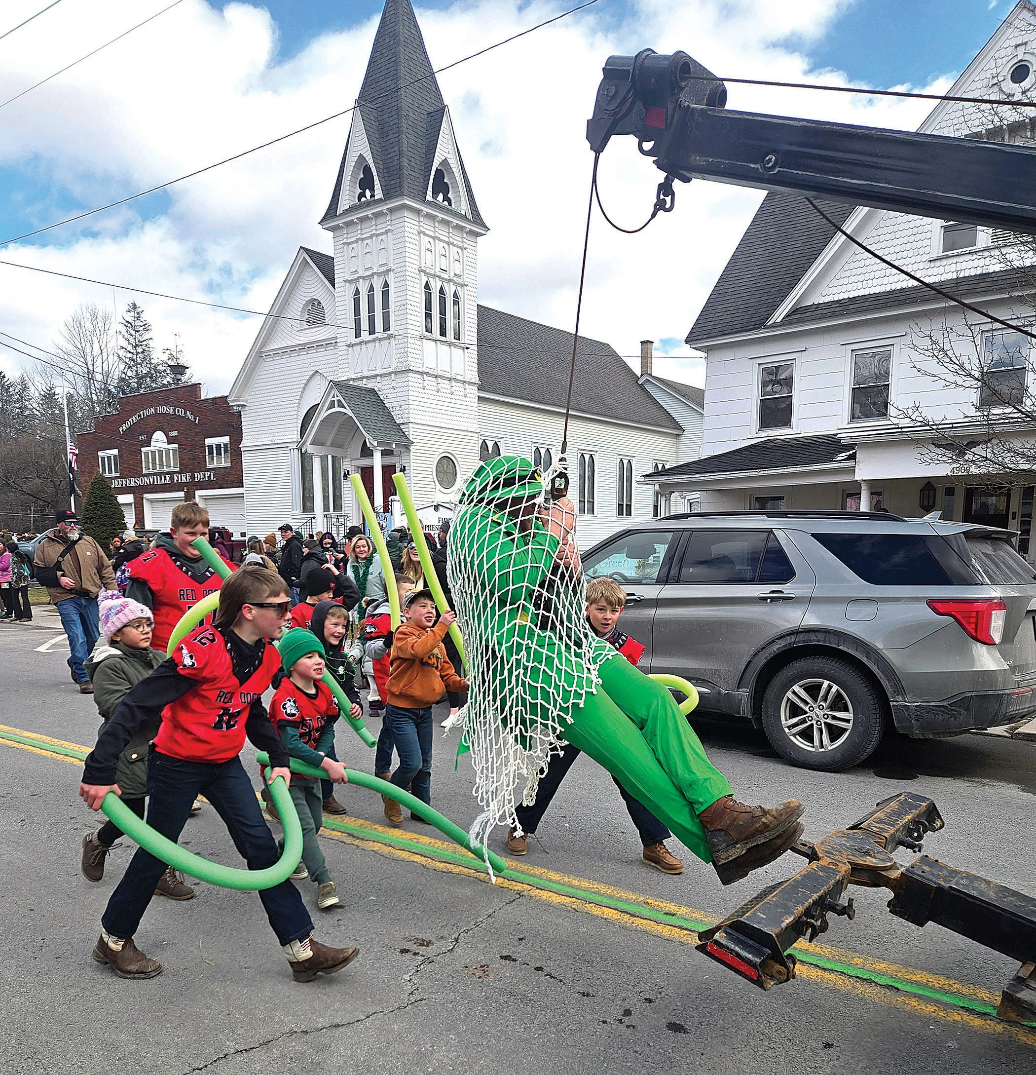 GETTING LUCKY Members of the Red Dogs Youth Football organization extract pot o’ gold info from a captive leprechaun. Connor Casey photo
