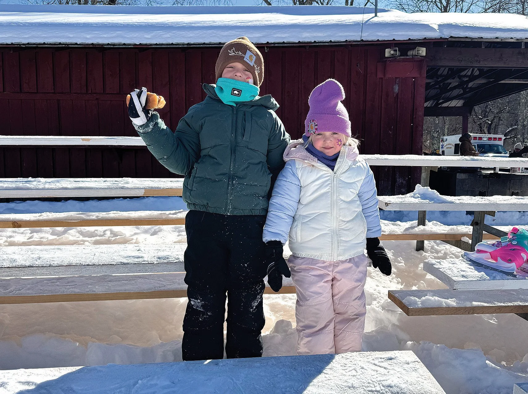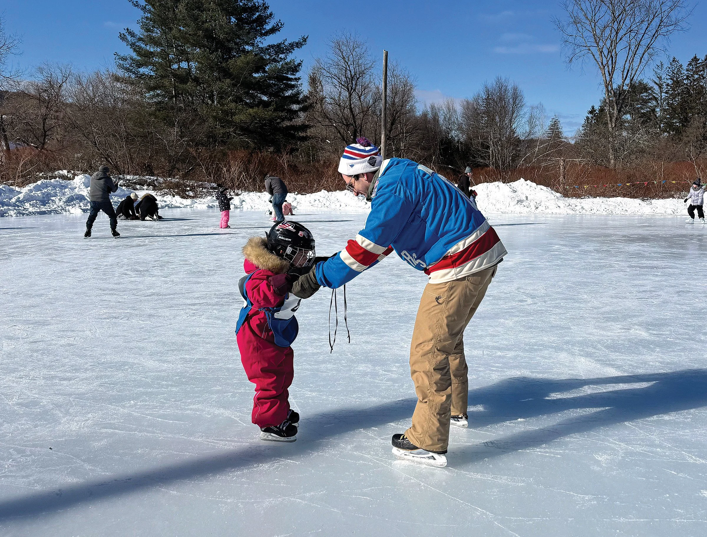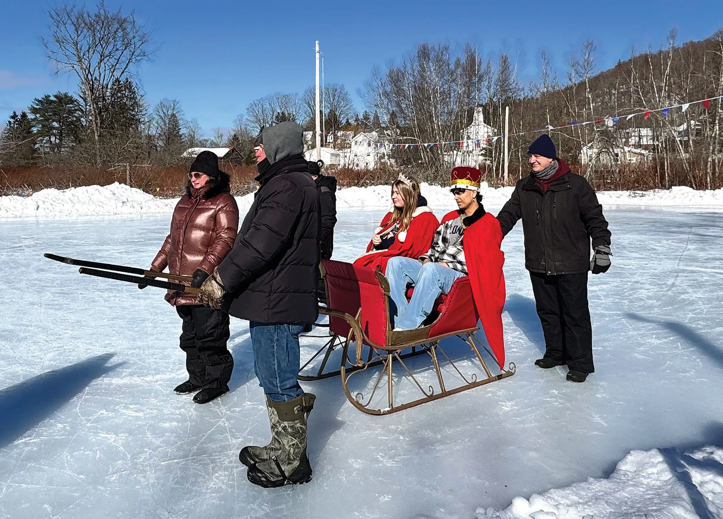 Following opening ceremonies, Rockland Central School students Eli Feliciano and Lydia Devantier, voted the event’s King and Queen of the Ice, formally toured the rink in a sled drawn by members of their court. For the younger set, games were set up in the snow, and horse-drawn wagon rides down Pleasant Avenue were once again provided by Butch Peters and his team of big Belgian work horses.
