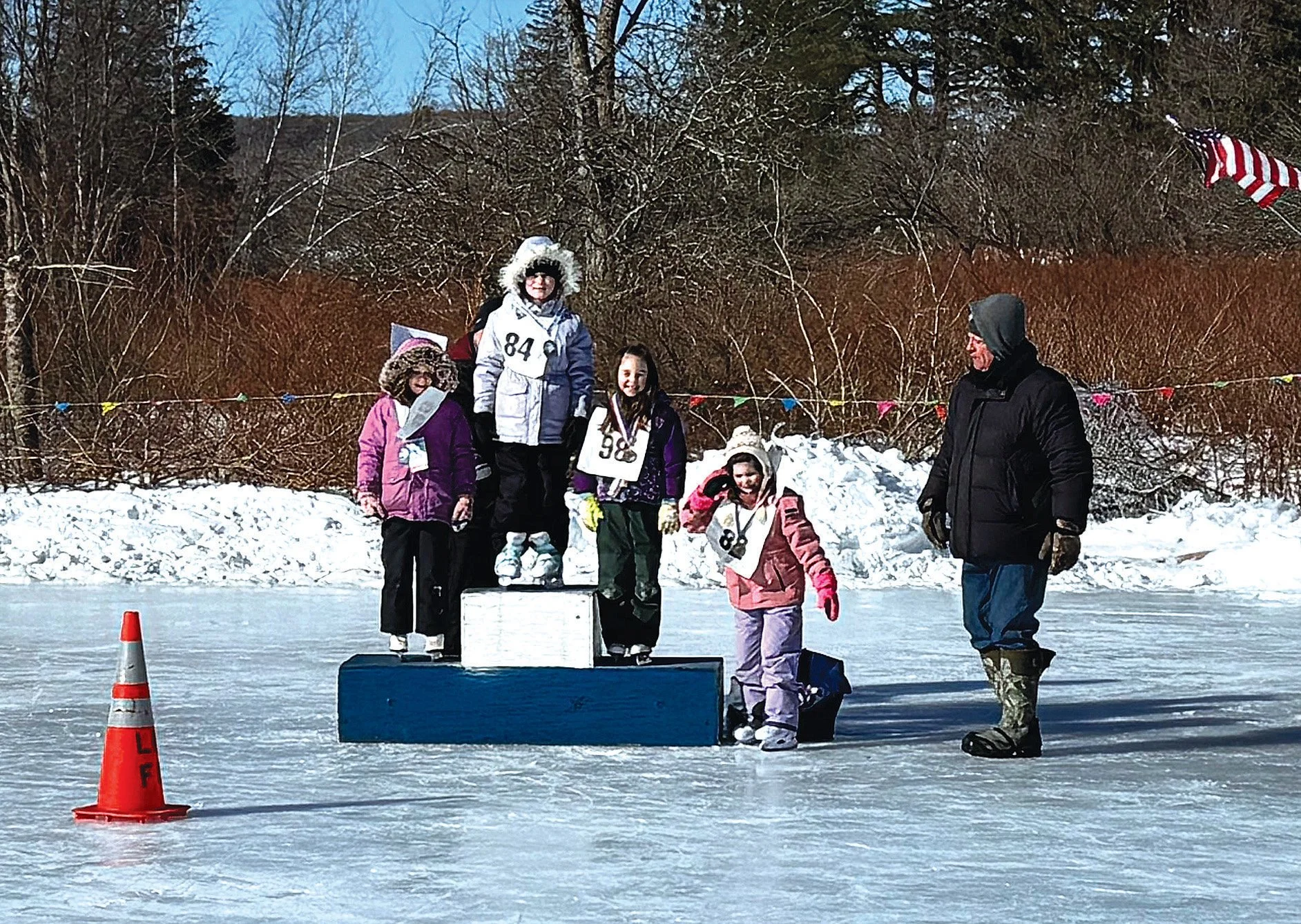 Livingston Manor, NY – Sixty six years after its inception, this hamlet’s annual winter escapade returned on Saturday, Jan. 31, a day of brilliant sunshine and appropriately frigid temperatures, much to the delight of skaters of all ages. The Livingston Manor Rotary Club’s 67th Ice Carnival got underway at noon with the National Anthem while Tom Babich and other Rotarians fired up the warming shed’s outdoor grill, preparing to roast hot dogs for Carnival attendees.